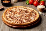 Italian sausage, pepperoni, sausage, onions, green peppers, mushrooms, black olives & bacon with mozzarella.