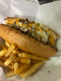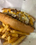 Chopped steak, green peppers, onions, mushrooms, cheese.
