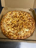 A sauceless pie tapped with Extra Virgin Oil, chopped Garlic, Mozzarella Cheese, parmesan cheese and ricotta cheese