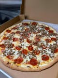 Pepperoni, sausage, hamburger, mozzarella & bacon with marinara sauce.