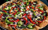 Roasted red & green peppers, fresh mushrooms, spinach, red onions, zucchini, black olives & chopped garlic.