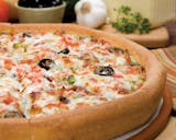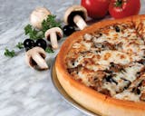 Loads of premium pepperoni, Italian sausage, diced onions, crisp green peppers and mozzarella cheese.