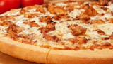 Tangy barbeque sauce, boneless grilled chicken breast strips, red onions, mushrooms and a 50/50 blend of mozzarella and cheddar cheese.