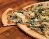 Packed with pesto flavor as a base sauce, add boneless grilled chicken breast strips, spinach, mushrooms, seasoned cheese, and mozzarella cheese.