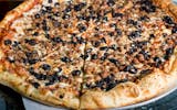 Mounds of fresh mushrooms, black olives & crumbled Italian sausage.