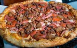 Canadian bacon, crumbled Italian sausage, genoa salami, pepperoni, ground beef, bacon & sliced spicy Italian link sausage