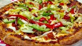 Pepperoni, Italian sausage, onions, green and red bell peppers, pepperoncini, crushed red peppers, and black peppers.