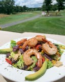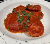 Spicy shrimp marinara, topped with light mozzarella cheese and parmesan cheese.