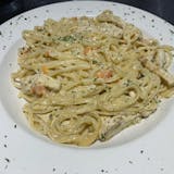 Grilled chicken over fettuccine noodle topped with Alfredo sauce. Supersized for your party.
