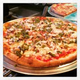 Onion, pepperoni, green pepper, extra cheese, sausage, bacon, mushroom.