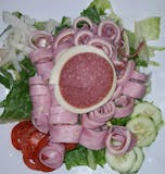Mozzarella cheese, gyro meat, homemade gyro sauce, fresh tomatoes and red onions.