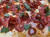 Thin crust layered with mozzarella cheese, pecorino romano, touch of oregano, layered with fresh mozzarella & kiss of honey topped with guido’s signature sauce & pepperoni cups, fresh basil & a touch of olive oil.