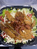 Crispy chicken, bacon & shredded mozzarella cheese over garden salad.