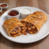 Topped with BBQ sauce, mozzarella, and chicken meat.
