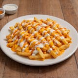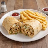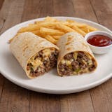 Ground beef, lettuce, tomato, ranch & cheddar cheese.