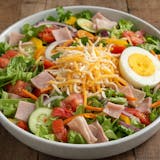 Premium mozzarella, mushrooms, onions, green peppers, black olives, and tomatoes.