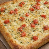 Garlic, Cheese & Oil White Sicilian Pizza with Fresh Tomato