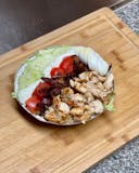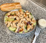 Lettuce, tomatoes, onions, green peppers & cucumbers, topped with grilled chicken. Served with a side of garlic bread.