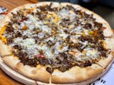 Sausage, bacon, pepperoni, cheddar & mozzarella.