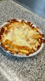 With mozzarella, fried chicken tossed in buffalo sauce topped with blue cheese & hot sauce.