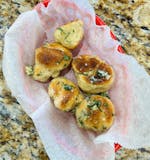 Bread, topped with garlic & olive oil or butter, herb seasoning, baked to perfection. Melts in your mouth and arouses the taste buds.