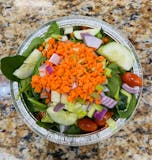 Field greens, tomatoes, cucumbers, celery carrots & red onions.