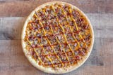 Homemade sauce, chopped hamburger, bacon, mozzarella & cheddar cheese.