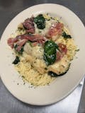 Sautéed with spinach, fresh garlic, prosciutto, and melted provolone cheese in a white wine sauce.