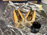 Steak, provolone, fried onion, mushroom, garlic butter.