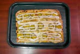 Our signature item! Double crust white pizza filled with seasoned steak & cheese. Thousands and thousands sold!