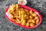 Popcorn Chicken Bites with French Fries