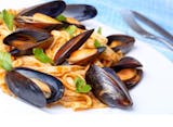 A light marinara sauce over linguini & mussels.