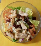 Grilled or crispy chicken, candied pecans, dried cranberries on top of mixed greens with crumbled bleu cheese and topped with balsamic vinaigrette.