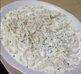 Tender grilled chicken, broccoli florets on top of a base of our homemade alfredo sauce. All covered with a 4 cheese blend!
