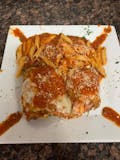 Eggplant stuffed with chicken, ham, ricotta & spinach topped with mozzarella cheese & sauce.