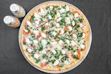 Sliced tomatoes, spinach, ricotta, mozzarella & fresh garlic.