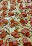 Served with pepperoni, ham and cheese. Extra toppings for an additional charge. Lightly baked, well done, light cheese available.