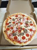 Topped with cheese, bacon, sausage, meatballs, ham & pepperoni.