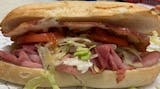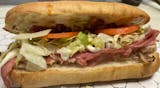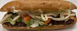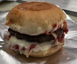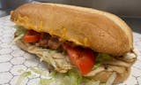 Chipped steak, pizza cheese, sauce, mush, onions & green peppers.