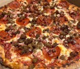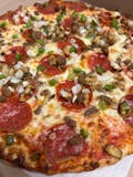 Pepperoni, sausage, mushrooms, onions, green peppers. No substitutions.