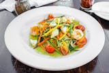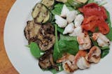 Mixed of romaine and spring mix salad tossed with glazed walnuts, sliced apples, dried cranberries, crumbled bleu cheese, drizzled with a homemade cranberry vinaigrette dressing topped with grilled chicken.