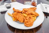 Baked in seasoned bread crumbs, with assorted vegetables.