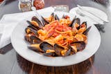 Bruschetta tomatoes, copper olive, lite garlic, basil in a bed of mozzarella cheese & sprinkled with parmesan cheese. Served with your choice of red or white sauce.