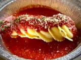 Pasta filled with ricotta and topped with tomato sauce. Choice of soup or salad. Garlic knots included.