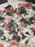 Fresh garlic, sautéed spinach, diced tomatoes, mozzarella & romano cheese.