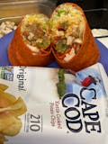 Grilled chicken, onions, peppers, tomatoes, shredded lettuce & cheddar cheese in a tomato wrap with a side of sour cream.