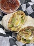 Served 8 am to 11 am. Eggs, chorizo sausage, green peppers, onions & pepper jack cheese.