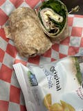 Roast turkey, brie, chopped romaine lettuce & cranberry mayonnaise in a honey wheat wrap.