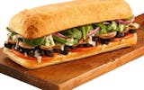 Seasoned steak and mozzarella cheese, topped with red onions, green peppers, fresh mushrooms, lettuce, tomatoes, mayonnaise and Italian dressing.