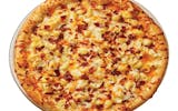 Taste the tropics with pineapple, ham, bacon and extra mozzarella cheese on our traditional red pizza sauce.